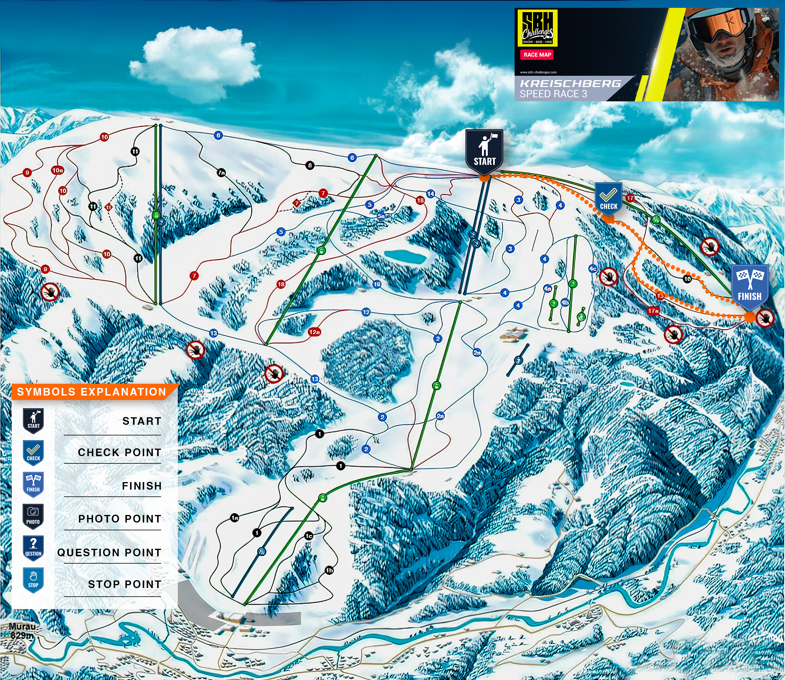 Az 1 830 méteres muraui pálya azoknak készült, akik szeretnek egy jól felépített, közepes hosszúságú távon dolgozni, és élvezik, amikor a sebesség és a technika egyszerre kap szerepet. Ez a kihívás nem túl hosszú, mégis van benne minden, amiért az ember szereti a síelést: ritmusváltások, könnyedebb csúszások, néhány precíz kanyar, és az a fajta lendület, ami miatt szinte észre sem veszed, milyen gyorsan haladsz lefelé.